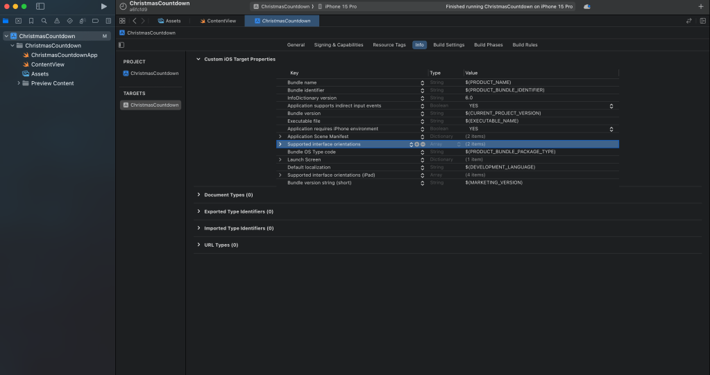 So this had set the stage for a simple countdown using just days, as graphically I wanted it to display a cute looking view. So I set to work. Edited the images all ready, imported these into my Xcode project & to slowly get my brain into the mood I purely worked on the visuals of the app. Just setting up the UI. I figured I can implement the logic a bit later on. This is how my code began & the design of the UI was staged.