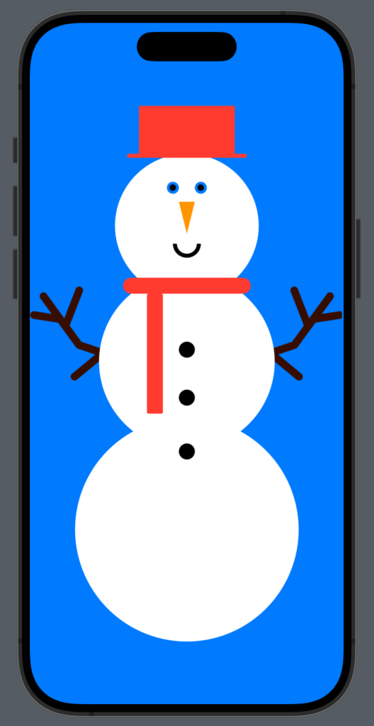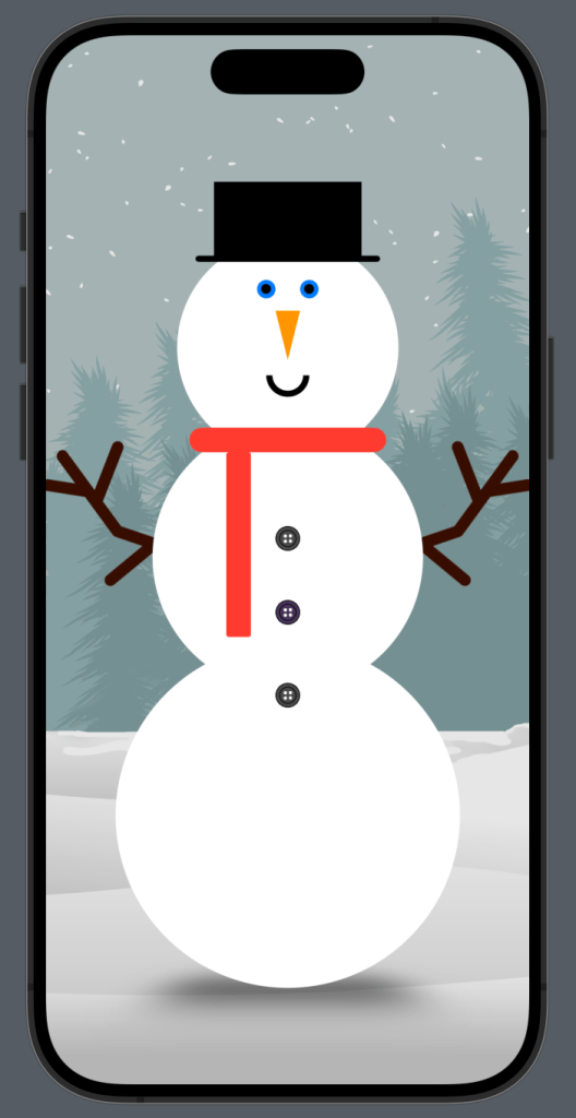 Now the theme of Frosty here is very much like yesterday’s prompt, with a little less confusion of layering a complex tree & using SwiftUI shapes in place of images wherever we can. A true programatic snowman if you will.