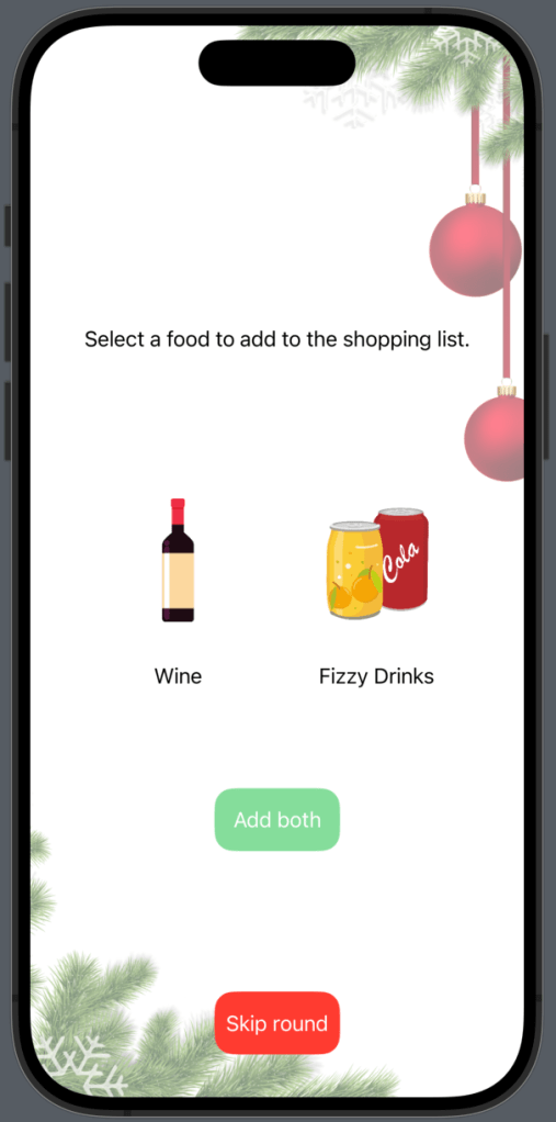 With this prompt I wanted to make something a bit more fun & game like. So I thought why not make a Christmas food shop into a game to create the shopping list!