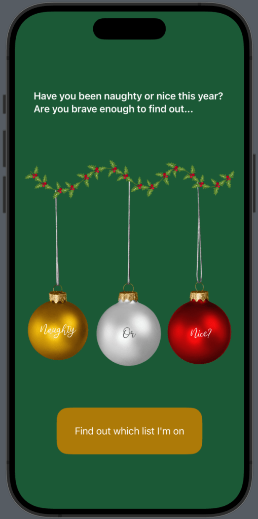 Text("Have you been naughty or nice this year? Are you brave enough to find out...")